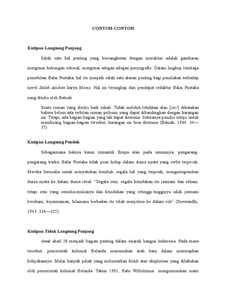 Contoh Kutipan Langsung Panjang : Kutipan Langsung Dan Tidak Langsung Dala : kutipan langsung panjang ditulis dalam paragraf tersendiri, dengan jarak 5 ketuk/spasi dari margin kiri, dan tetap dalam jarak 1,5 spasi (seperti teks).. kutipan langsung panjang adalah kutipan yang lebih dari empat baris tulisan. (1)teks diketik dalam spasi tunggal. Adapun beberapa cara menulis kutipan langsung dan tidak langsung yang baik dan benar adalah sebagai berikut. contoh kutipan langsung panjang tentang ekonomi. Memberi jarak selebar 2,5 spasi antara teks asli dengan teks kutipan.
