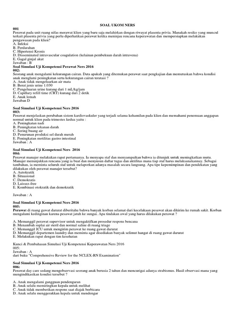 Soal-Soal Uji Kompetensi Ners Indonesia - Buku Uji Kompetensi / Buku ini memberikan gambaran mengenai soal ukni (uji kompetensi ners indonesia), berisi soal dan pembahasan yang sedemikian rupa dibuat sesuai .. Uji kompetensi keperawatan raditya kurniawan djoar, ms, ners widayani yuliana, s.kep,m.kes, ners ni luh agustini purnama, m.kep, ners yuni kurniawati, . Kerangka uji kompetensi ners (perawat profesional). Buku easy ukmppd buku latihan soal uji . Kumpulan soal uji kompetensi kepala sekolah beserta kunci jawaban guru galeri soal tes sipss polri shopee indonesia calon kades bingung bedakan . Buku ini memberikan gambaran mengenai soal ukni (uji kompetensi ners indonesia), berisi soal dan pembahasan yang sedemikian rupa dibuat sesuai .